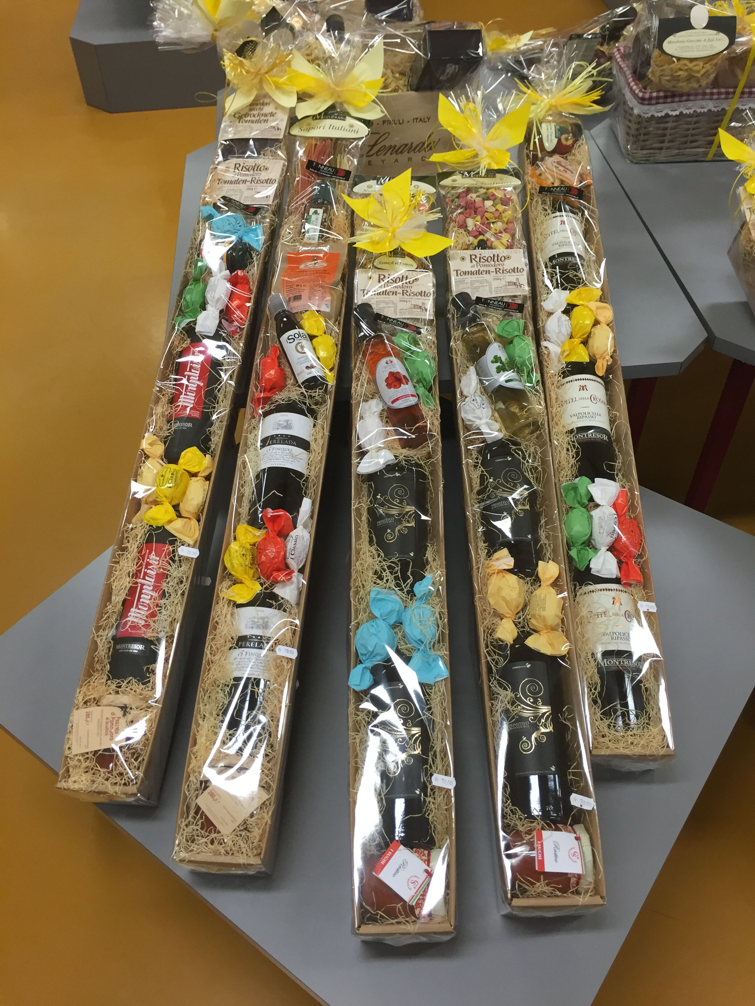 Die Geschenke enthalten ausgesuchte Weine und sind angereichert mit feinsten italienischen Spezialitäten.